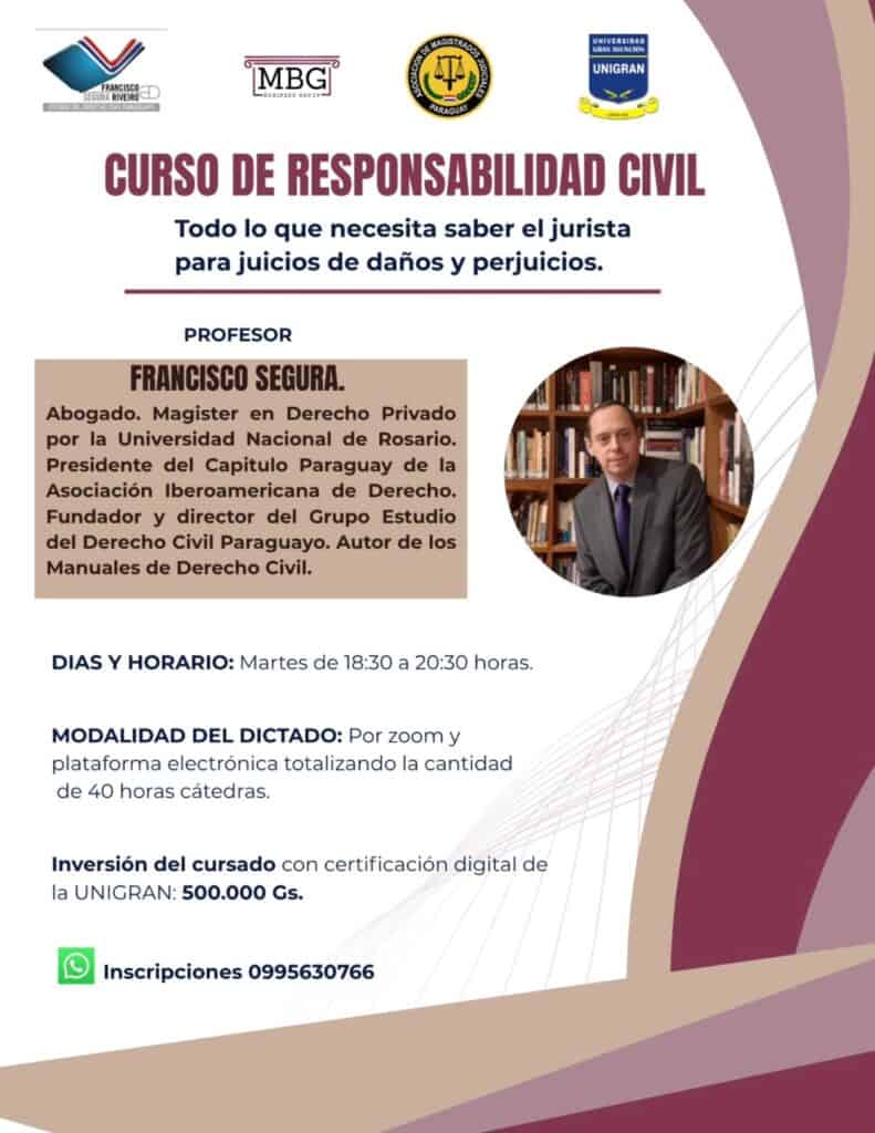 El Profesor FRANCISCO SEGURA compartirá 6 clases sobre la actualidad práctica y teórica del derecho de daños.